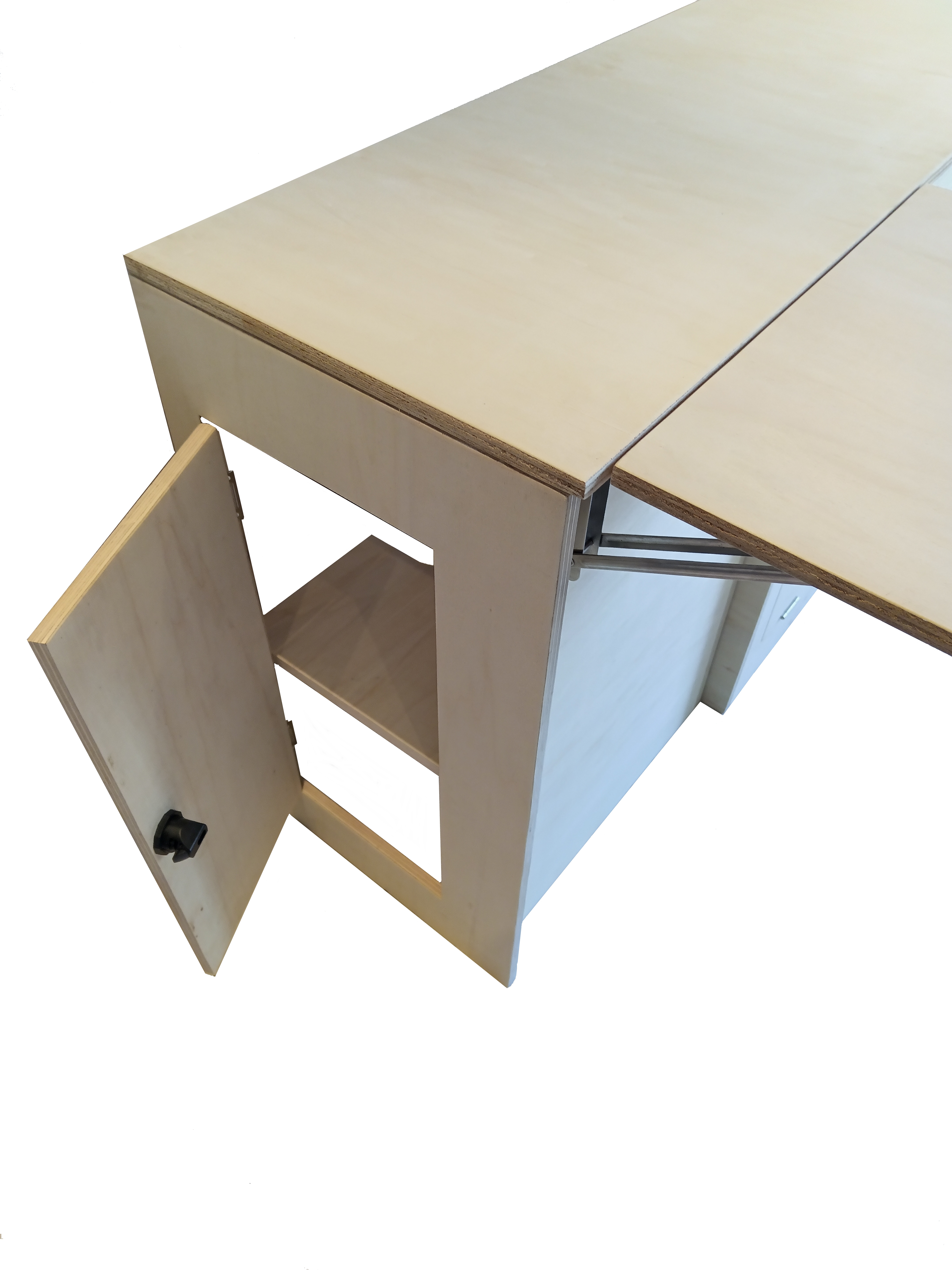Réalisé en contreplaqué de peuplier 15 mm. Ce meuble est entièrement fabriqué dans notre atelier près de Troyes. Il est conçu pour les véhicules de type Trafic, Transporter, Boxer, Vito, Custom, Jumper et autres. Il s'adapte aussi bien aux weeks-ends, aux voyages longue durée ou aux véhicules ateliers.