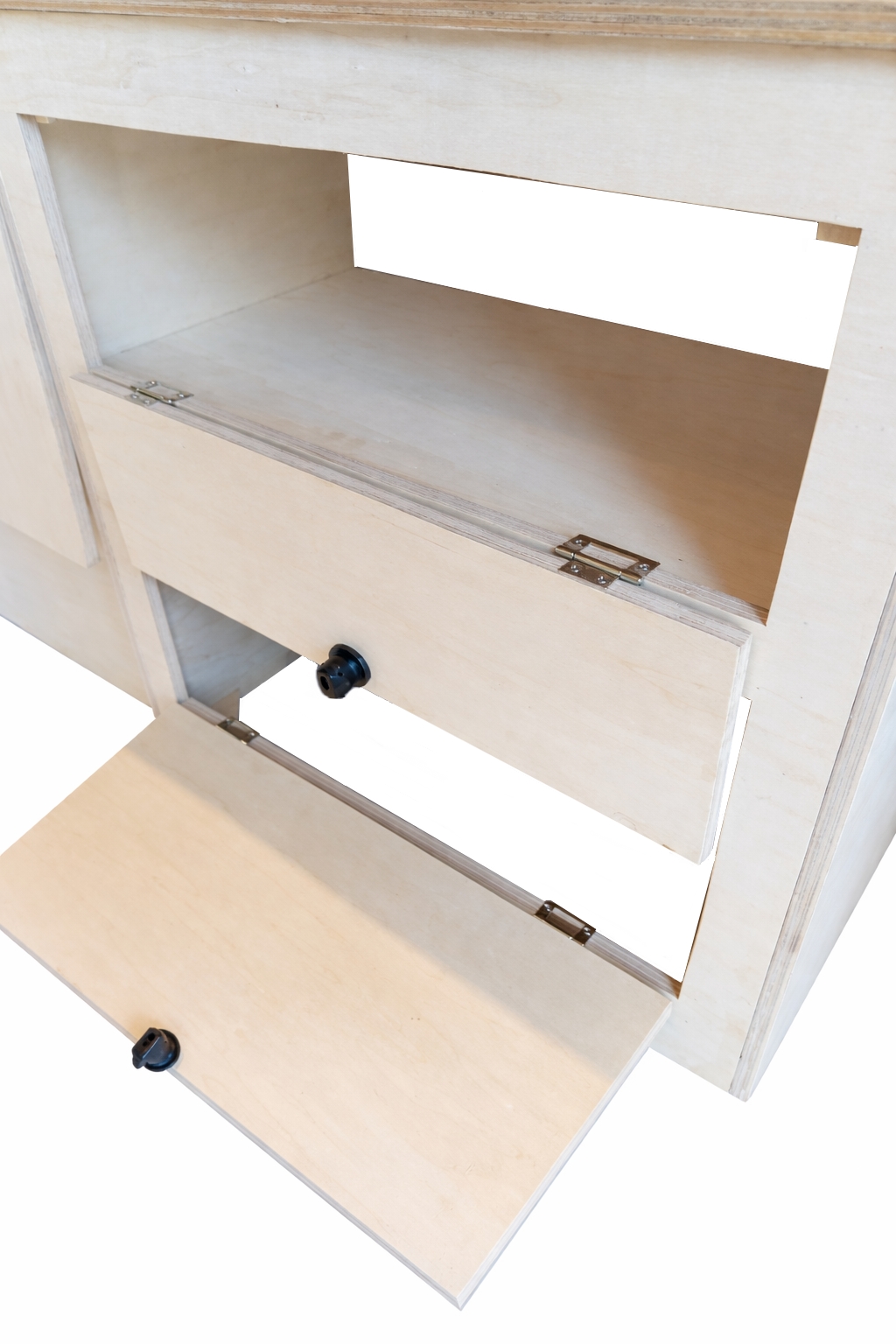Réalisé en contreplaqué de peuplier 15 mm. Ce meuble est entièrement fabriqué dans notre atelier près de Troyes. Il est conçu pour les véhicules de type Trafic, Transporter, Boxer, Vito, Custom, Jumper et autres. Il s'adapte aussi bien aux weeks-ends, aux voyages longue durée ou aux véhicules ateliers.